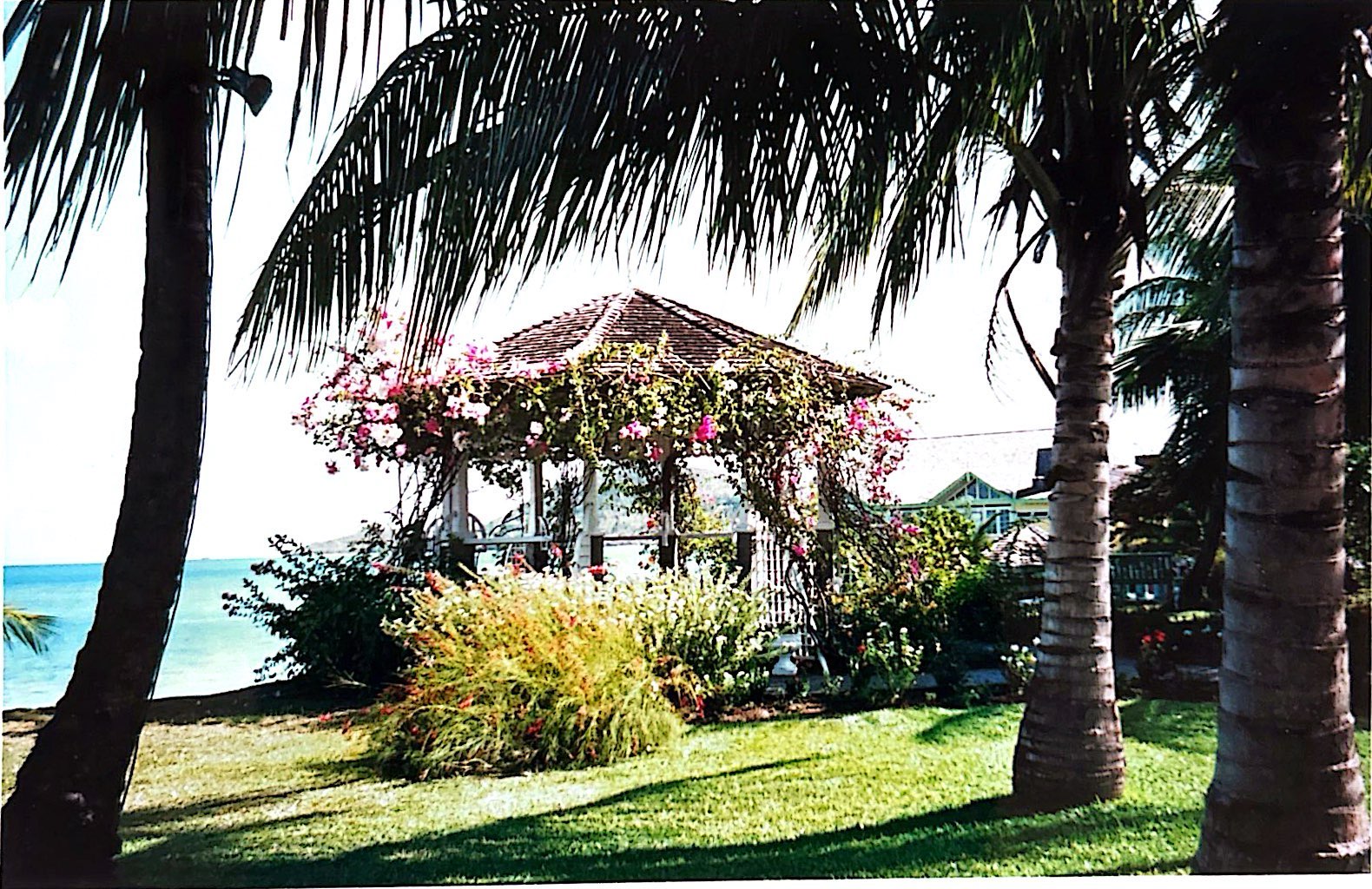 As they steered their boards to shore, Violet took in the view of the crowded and colorful beach. Wooden lounge chairs adorned with blue and yellow striped cushions and shaded by matching sun umbrellas lined the shoreline. Up on the bluff the brilliant white stucco walls and red tiled roof of the hotel rose into the cloudless cerulean sky. A gentle sea breeze carried the burbling music of a steel drum band out across the water. Violet thought she recognized the tune to one of favorite songs by Carly Simon. Wishing she had her camera, Violet filed away this idyllic view in her memory, knowing it would warm her heart on cold winter days ahead at home in Maine.