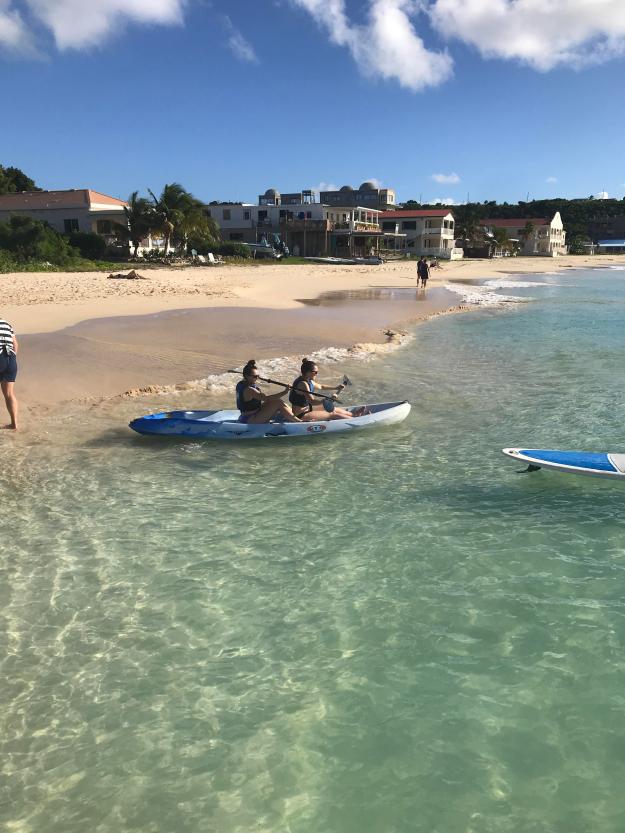 Her paddle boarding instructor, Marco, offered encouraging words as she heaved herself back onto her board and rose slowly to a standing position. “You’re doing very well,” he said. “Everyone falls sometimes. Are you sure this is your first time paddle boarding?”